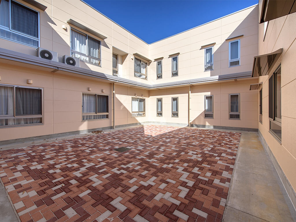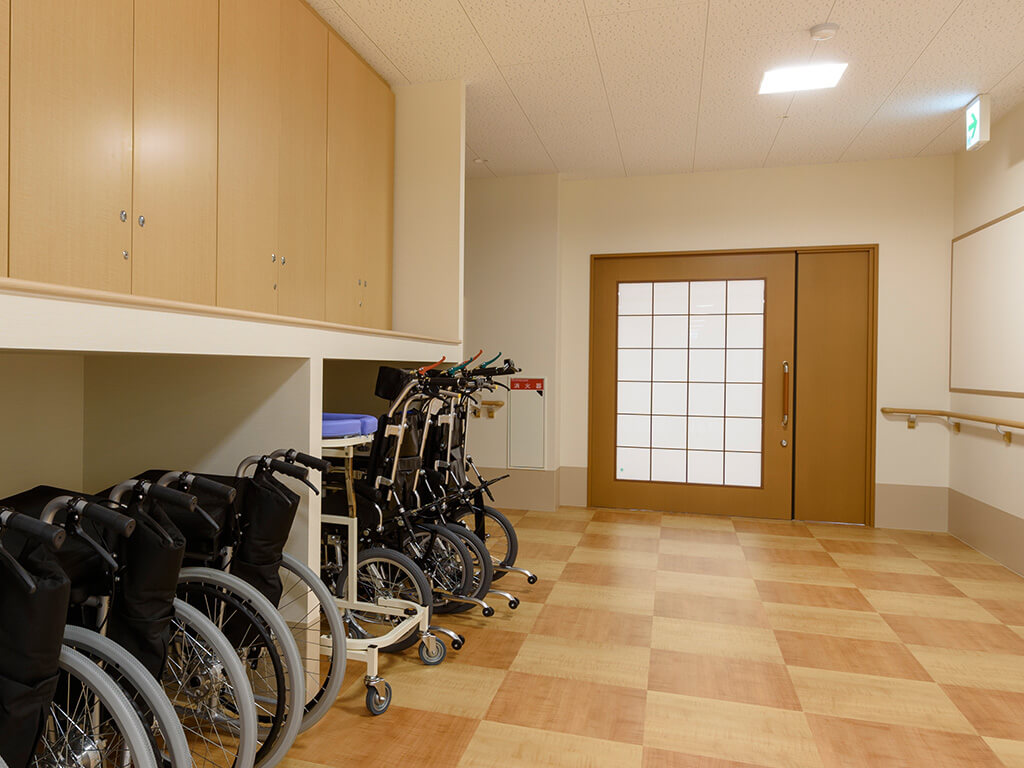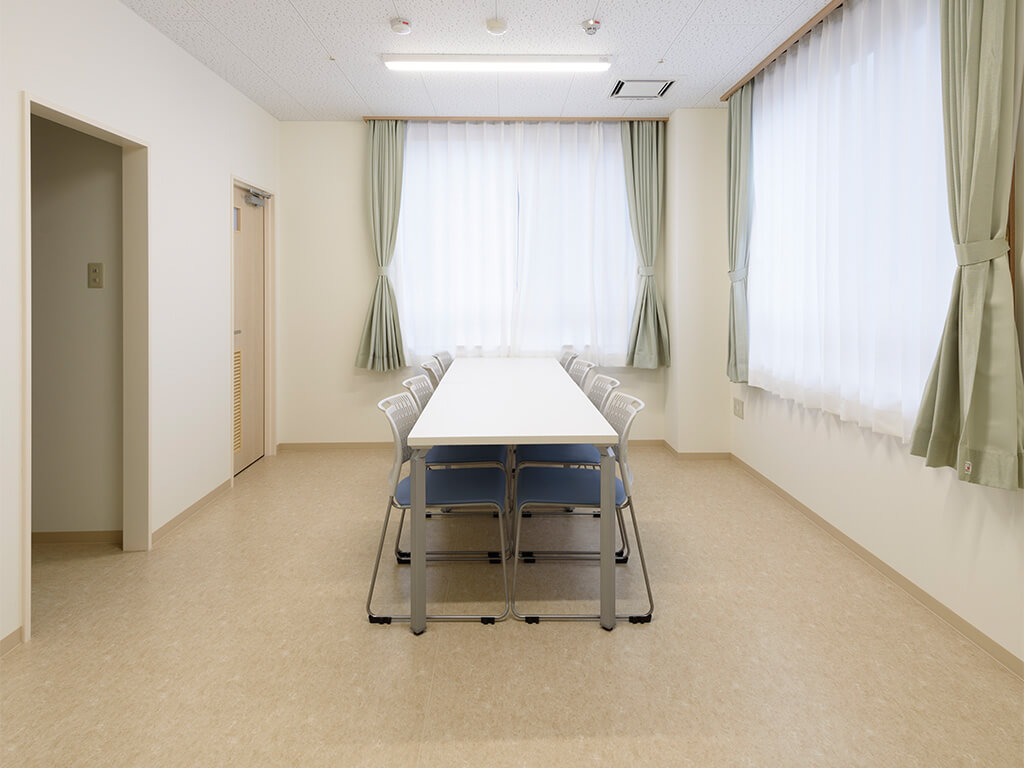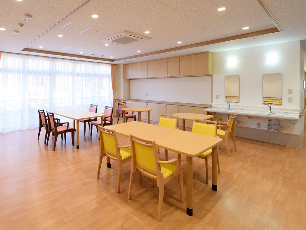 | ● 設備【1F】 | 一般居室、談話交流スペース、共同生活室(キッチン)、一般浴室、 機械浴室、相談室、面談室、ボランティア室、医務室、宿直室、厨房、 事務室、パブリックスペース他 |